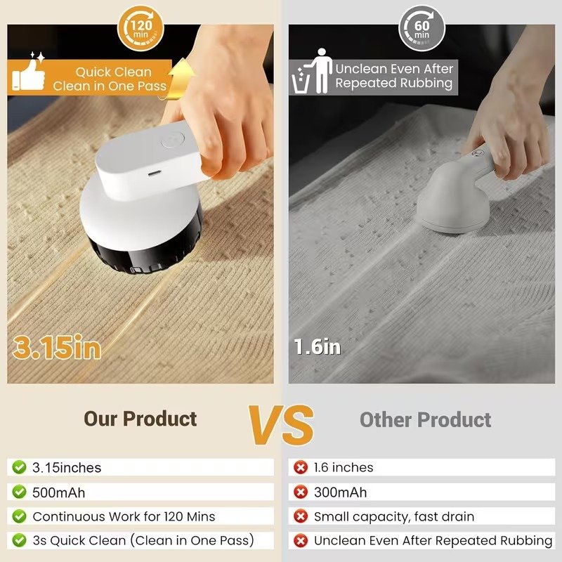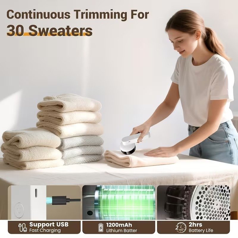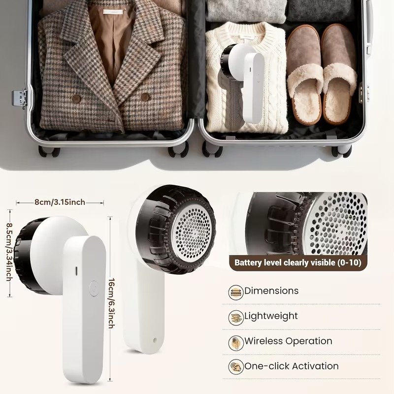 تجمع هذه الأداة بين الكفاءة والراحة العصرية بفضل إمكانيات الشحن متعددة الوظائف. سواء كنت في المنزل أو مسافرًا، يمكنك شحنها عبر بنك طاقة، أو جهاز كمبيوتر، أو شاحن سيارة، أو مقبس كهربائي عادي. يُبقيك مؤشر LED الذكي على اطلاع دائم: يشير الضوء الأحمر إلى الشحن النشط، بينما يؤكد الضوء الأبيض الساطع أن البطارية الممتازة ممتلئة وجاهزة للاستخدام المكثف. أما بالنسبة للبطارية، فإن أداءها طويل الأمد يسمح لك بتنظيف ما يصل إلى 10 قطع ملابس - من المعاطف الشتوية الثقيلة إلى سترات الكشمير الرقيقة وحتى سجاد المنزل - بشحنة واحدة. ولجلسات التنظيف الطويلة، يدعم الجهاز خاصية "الاستخدام أثناء الشحن"، مما يضمن عدم انقطاع سير عملك.