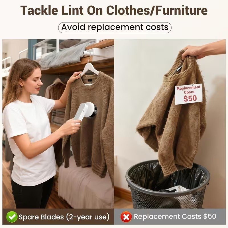 جددي خزانة ملابسك مع ماكينة إزالة الوبر الكهربائية ذات الست شفرات. تتميز هذه الماكينة القابلة لإعادة الشحن بتصميم مريح وعالي الجودة، وغطاء خلفي مغناطيسي، وشفرات فائقة الحدة من الفولاذ المقاوم للصدأ، وهي تزيل الوبر والزغب من السترات والمعاطف والسجاد بأمان في ثوانٍ.