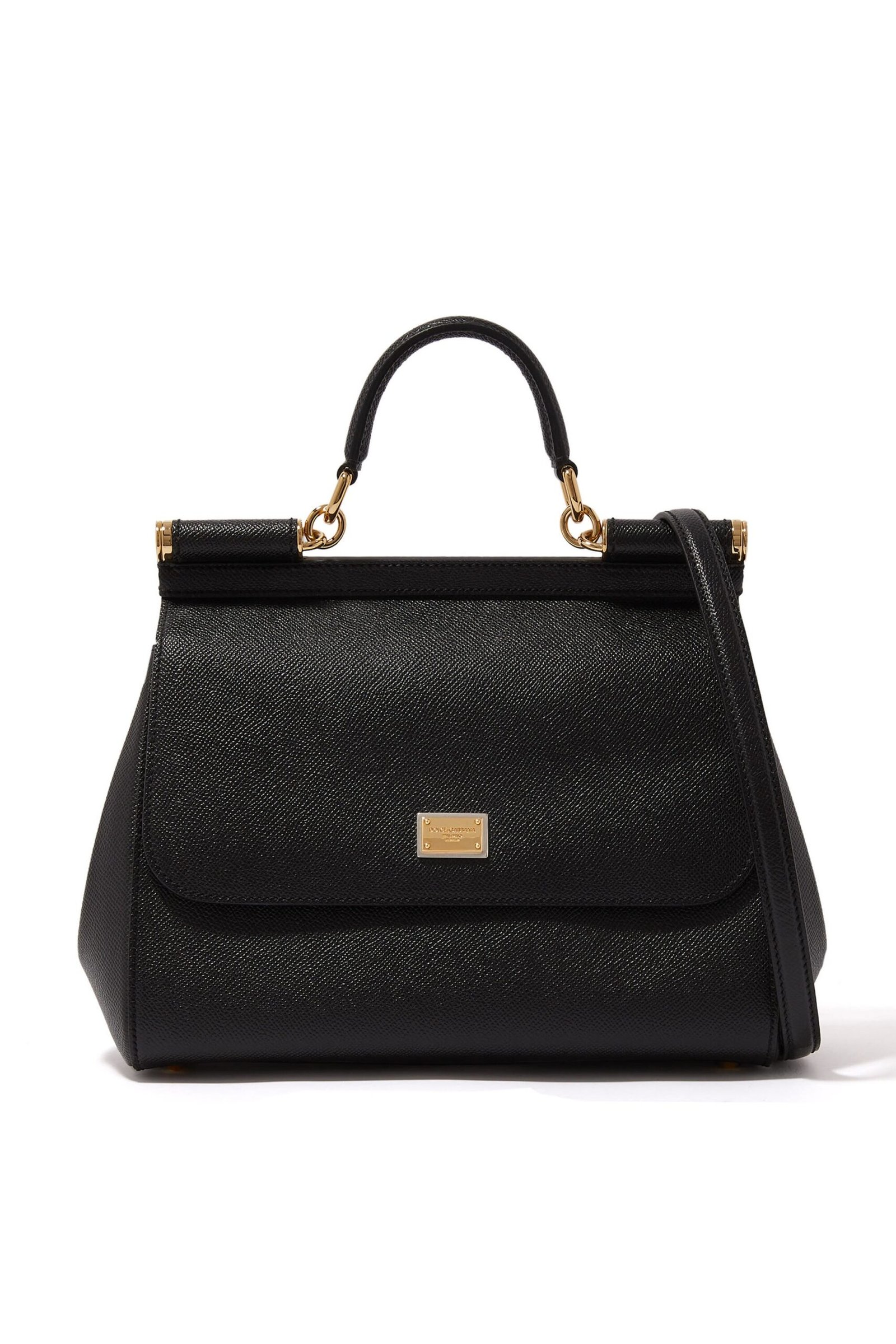 The architectural design is defined by its structured top handle, offering a refined handheld carrying option with a 90mm drop. For the modern woman on the go, the bag includes a detachable shoulder strap with a 600mm drop, allowing for effortless crossbody wear. The exterior is accented by polished gold-tone hardware, including the iconic logo-engraved plaque that serves as a hallmark of Dolce & Gabbana’s artisanal heritage. Securely fastened with a magnetic flap closure, the bag opens to reveal a surprise of high-fashion flair: a luxurious leopard-print textile lining. This bold interior includes an internal zipped pocket, providing a safe space for smaller essentials while maintaining the bag’s organized profile.