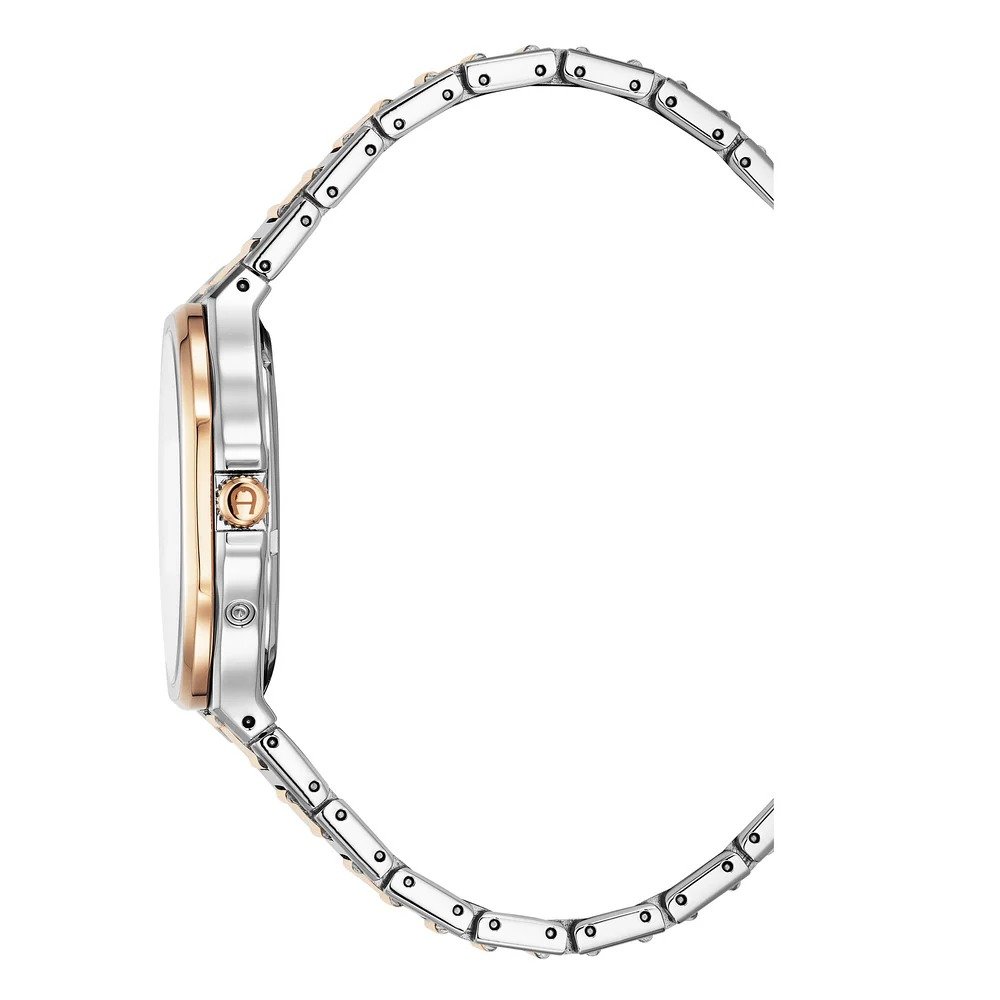 Durability is built into every layer of the Fermo watch. The stainless steel case is secured with a screwed caseback for added protection, while the dial is shielded by resilient mineral glass. The integrated two-tone bracelet features a polished and brushed finish, secured by a reliable clasp that ensures all-day comfort. With a water resistance of 3 ATM, the watch is protected against everyday splashes, ensuring it remains a reliable companion for the modern urbanite. Every detail, from the rose gold plating to the precise analogue calibration, reflects Aigner’s heritage of German quality and Italian-inspired flair. It is a breakthrough in personal style management, providing a unique and confident aura of success for those who refuse to settle for anything but the best.