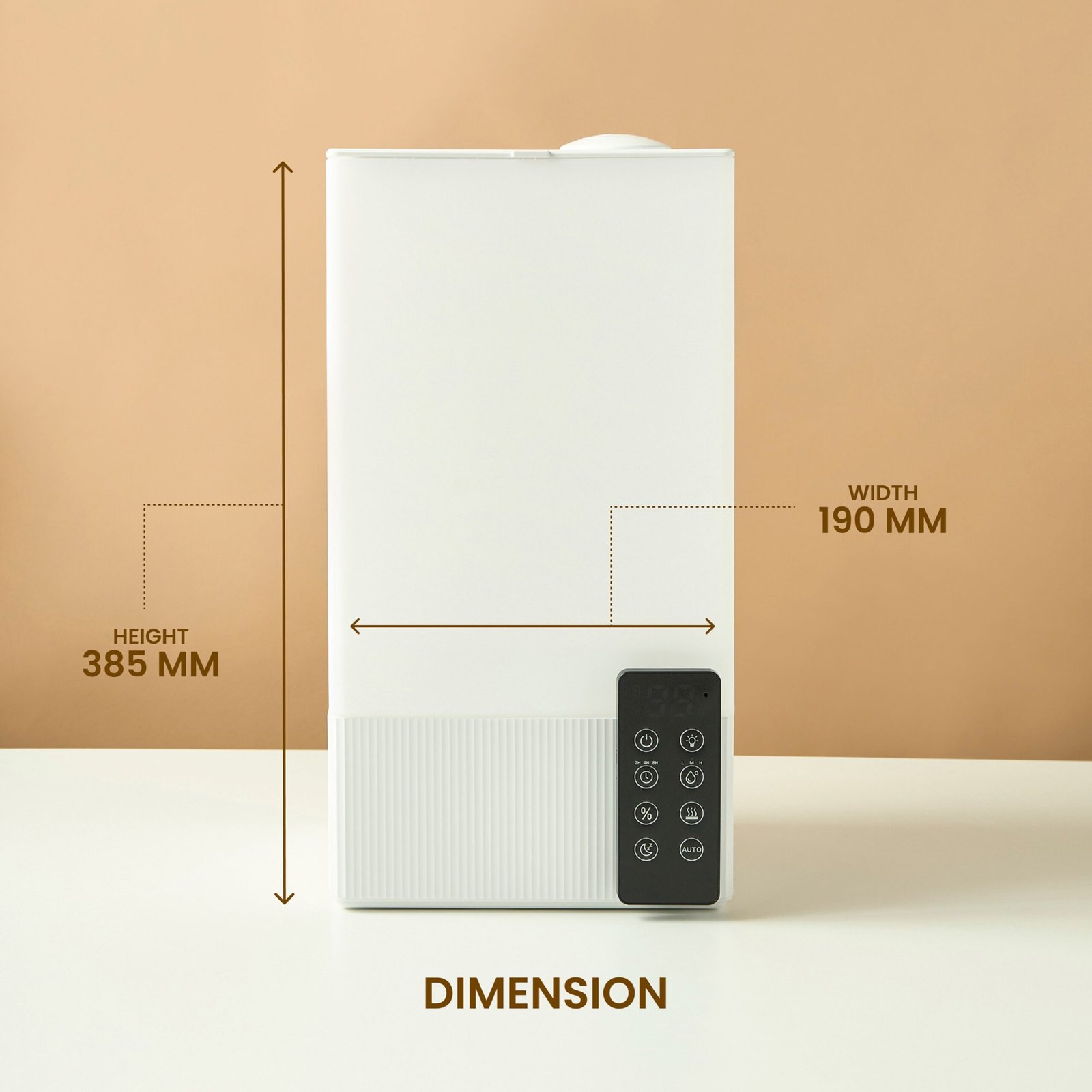Measuring 19 cm in width, the unit maintains a compact footprint despite its large volume, making it suitable for floor placement or sturdy tabletops. Its minimalist white finish acts as a canvas for the surrounding decor, while the whisper-quiet technology ensures your peace remains undisturbed. This humidifier is the ultimate investment for those who prioritize health, hydration, and a fragrant home. Please note that while our images showcase the lifestyle application of this product, props are used for illustrative purposes only. Elevate your home’s air quality and aesthetic appeal today with this essential wellness companion.