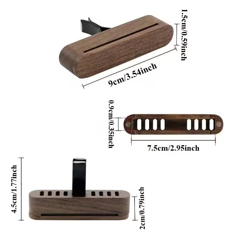 Transform your driving experience with this exquisite Wooden Car Essential Oil Diffuser. Featuring a high-quality wood body, a magnetic easy-refill design, and a protective silicone-encased vent clip, it offers a sustainable and elegant way to enjoy your favourite scents on the road.